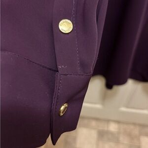 Elegant purple shirt dress with gold button-up front. Perfect for any occasion.