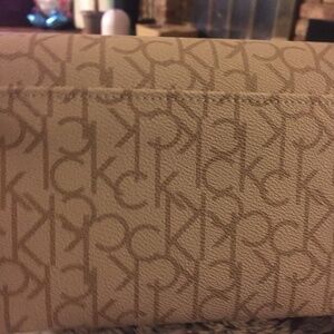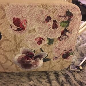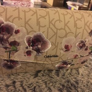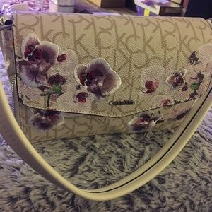 Calvin Klein purse, completely new, never used, all original packing and tags. Ivory/cream with flowers.