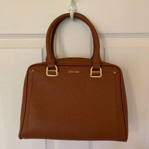 Brown with gold accents. 10.5" wide by 7.5" tall. Like new, excellent condition. Great storage sections inside.