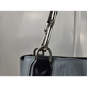 This Calvin Klein Handbag is so fun! The dark and light blues give this sophisticated silhouette a pop of fun color. The bag is in great condition. At 13x12.5 its perfect for everyday use or for adding a touch of designer flair to any outfit.
