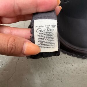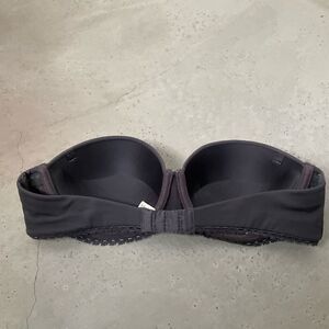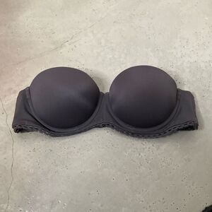 Calvin Klein Push Up Strapless Bra Push up Hook and eye closure in back Lace on bottom Does not come with extra straps Color: Grey Size: 34B Excellent Condition