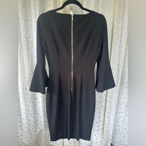 Calvin Klein Quarter Bell Sleeve Crew Neck Exposed Back Zip Sheath Dress 4