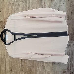 Calvin Klein Quarter Zip Blush with Black Trim Blouse Size Medium