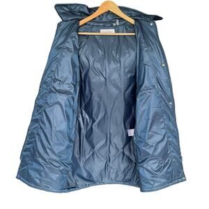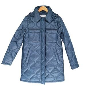 Calvin Klein Quilted Hooded Jacket Sz S Turquoise Blue Full Zip Mid Length Coat