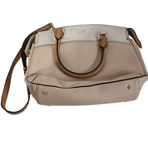 Calvin Klein Raelynn Pebbled Leather Satchel Bag Beige White Colorblock Purse