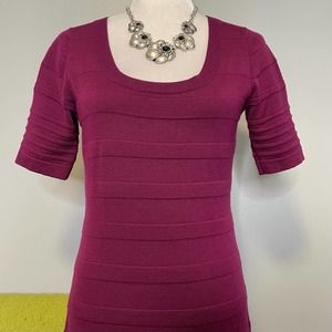 Calvin Klein Raspberry Wool Knit A-Line Sweater Dress Work Cocktail