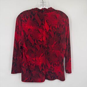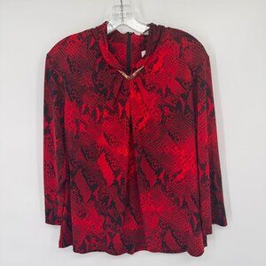 Calvin Klein Red Black Snake Print Blouse top knit Gold Accent Detail size lar