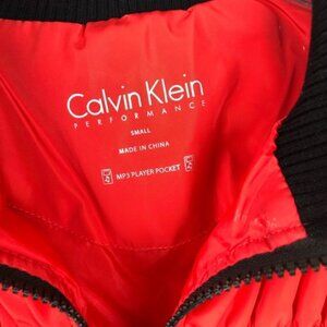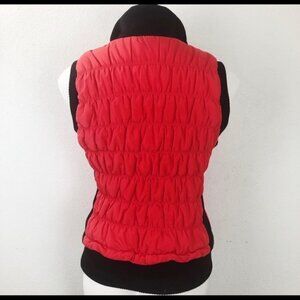 Calvin Klein Tom Puffer red vest with black trim and zipper. Side zipper pockets. Has a lot of stretch in addition to the pit to pit measurement. Like new pre-owned condition. Size S