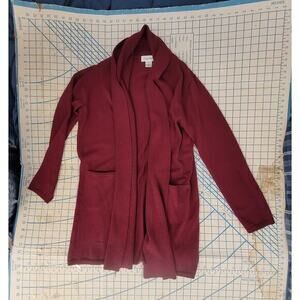 Calvin Klein Red Burgundy Shawl Collar Open Cardigan Bohemian Jacket Sweater