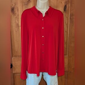 Stylish red button-down blouse by Calvin Klein. Beautiful flowey fabric, perfect for any occasion. Any questions please ask. Thank you for browsing my collection!