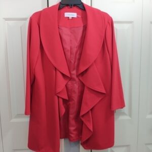 Calvin Klein Red Cascade Open front Blazer Jacket 14