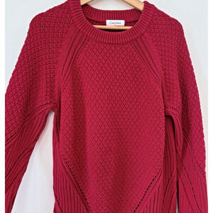 Calvin Klein Red Chunky Knit Sweater Crewneck Classic Logo Festive Holiday M