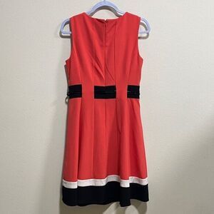 Calvin Klein Red Colorblock Fit & Flare Dress Size 8 Belted Sleeveless Midi