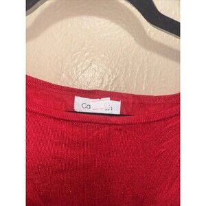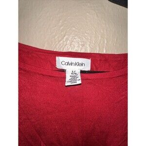 Keywords: Calvin Klein, Red Top, Long Sleeve, Pearl Embellished, Size L, Crew Neck, Casual Top, Designer Top, Women's Fashion, Contemporary Style, Classic, Comfortable, Stylish