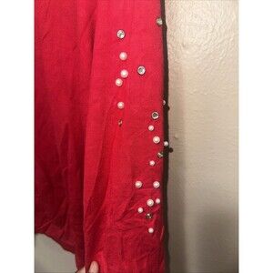 Calvin Klein Red Embellished Pearl Detail Long Sleeve Top Size L