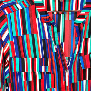Calvin Klein Red Green Multicolored Striped Button Up Blouse size Medium