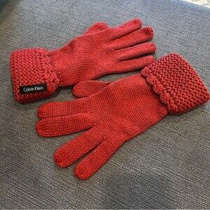 These Calvin Klein Red Knit Gloves are in excellent condition and has never been worn.