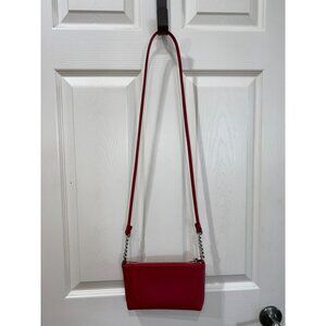 Calvin Klein Red Saffiano Leather Crossbody Bag With Silver Chain Strap