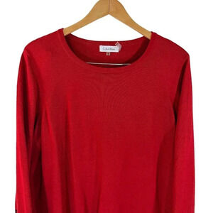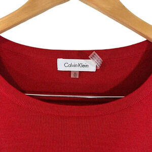 Calvin Klein Red Striped Sweater Tunic XL Slit Hem Black And White Trim Knit Top