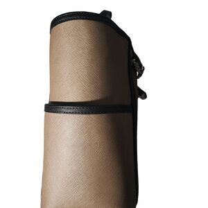 Like New pre-loved Calvin Klein purse without the wallet. Red and tan with silver hardware. 3 large pockets inside. Inside is like new. No blemishes or stains. Excellent LN (pre-loved) condition. No signs of wear & tear distress.