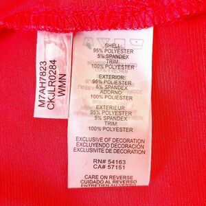 Level up your wardrobe with this vibrant and chic Calvin Klein Tunic Blouse! The striking scarlet red color, combined with the polished gold zipper and bold black faux leather trim on the V-neck collar, makes this top a powerful statement piece. This top transitions effortlessly from the office to dinner party. Fabric offers great stretch, drape, and wrinkle resistance for an edgy yet polished Contemporary fit.
