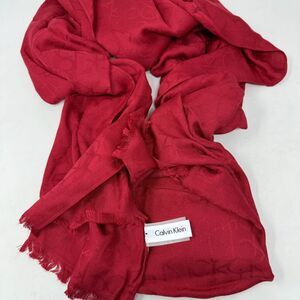 Calvin Klein Red Viscose Soft Scarf Raw Edge CK Logo