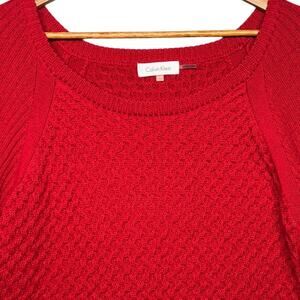 Calvin Klein Red Wool Blend Long Sleeve Pullover Knit Sweater Women Large