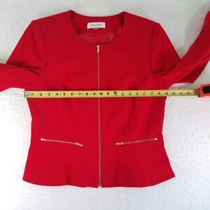 Calvin Klein Red Zip Front Blazer Womens SIZE 12 Gold Tone Seam Detail Pockets