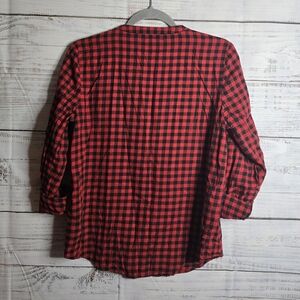 Calvin Klein Red and Black Checkered Button Up Shirt Longsleeve Womans Small