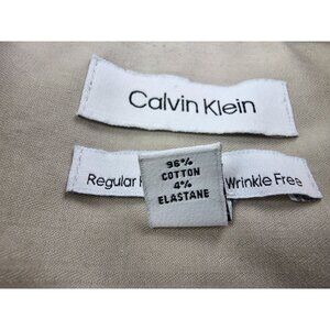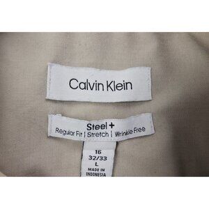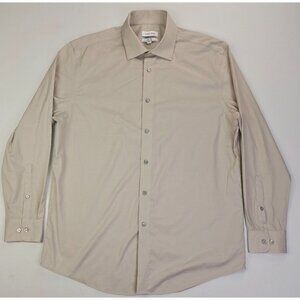 Calvin Klein Regular Fit 16 32-33 L Steel + Stretch Wrinkle Free Mens Tan Shirt