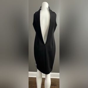 Calvin Klein Rhinestone Beaded Collar Black Halter Dress Size 4