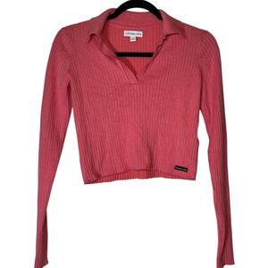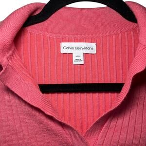 Calvin Klein Ribbed Collared Polo Cropped Sweater Pink Size Small