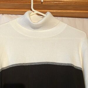 Calvin Klein Ribbed Color Block Mock Neck Women XL/EG/TG Black/White NWT Sweater