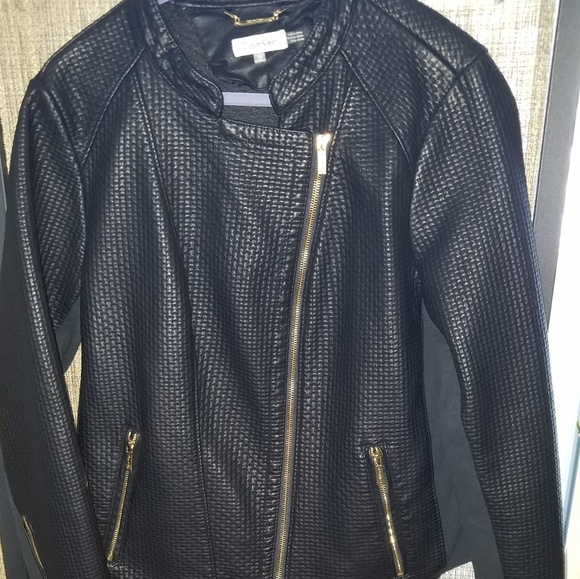 Black Ribbed Jacket with Gold Accents (zippers,zipper pulls) Never Worn, Size XL but is tight fitted.