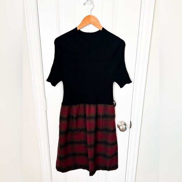 In excellent condition. Is a belted dress but does not include belt. Top part of the dress is mock neck ribbed texture with a fleece like/sweater skirt bottom. Size large.