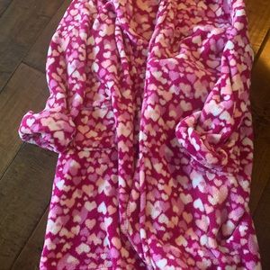 Kids’ Calvin Klein Medium Sized Robe. Pink on pink on white. Fuzzy with tie to adjust for size and comfort.