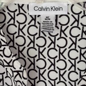 Calvin Klein Roll Sleeve V Neck Button Down CK Logo Size M Dressy Blouse #BD