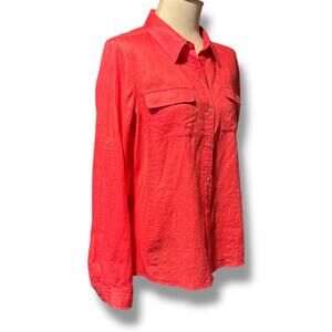 Calvin Klein Roll-Tab Long Sleeve Button Up Linen Pink Large