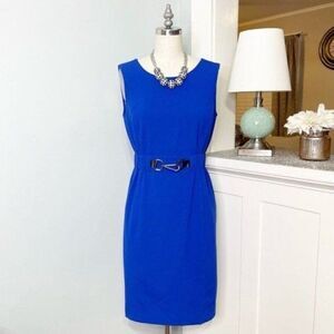 Calvin Klein Royal Blue Sheath Dress. Stretchy. Sleeveless style. Elastic waist with a buckle in front. Full zipper in back. Lined. In excellent condition. Size 2. Perfect for the office or date night!