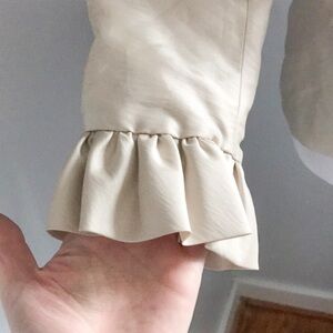 New!! Calvin Klein Ruffle Detail Lightweight Jacket / Blazer. Perfect new without tags condition. Light tan / cream color. Size Medium. Has removable tie belt, so waist can be cinched. Also available in gray /silver !