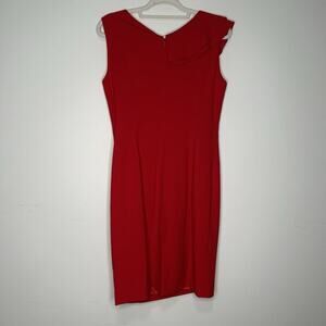 Calvin Klein Ruffle Front Cocktail Dress 10 Red Classy Event Wedding Guest