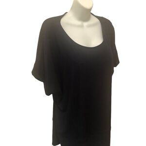 Calvin Klein SS Black On Black Color-Block Career Tunic Top Sz XL Scoop Neck Stretch
