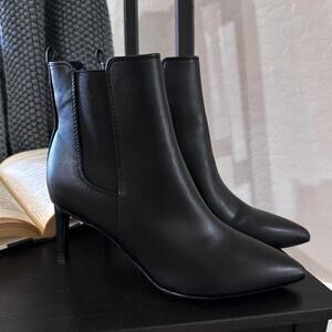 Calvin Klein Samara 3 Pointed Toe Stiletto Heels Boots Quiet Luxury Black sz 6.5