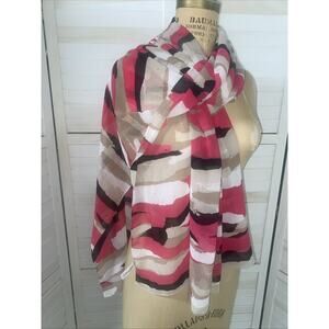Calvin Klein Scarf Women Pink White Black Block Curves Wrap Sheer Rectangle