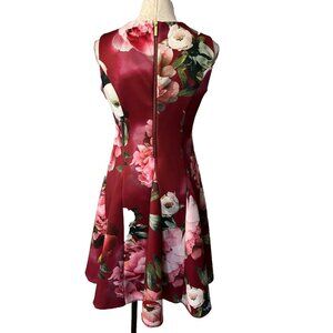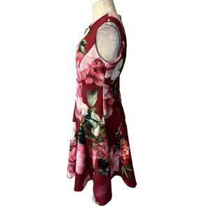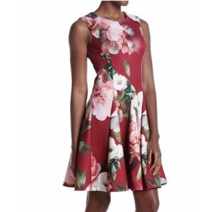Calvin Klein Scuba A Line Dress 8 Plum Red Pink Floral Career Stretch $134