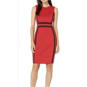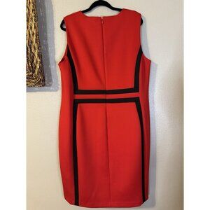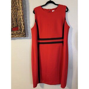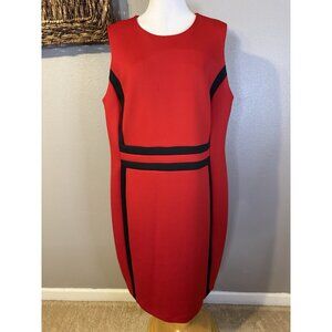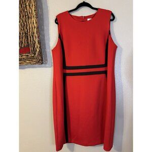Calvin Klein Scuba Dress 20W Red Black Trim Sleeveless Career Church Party