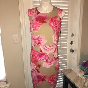 Calvin Klein Scuba Floral Knee Length Dress - Large 40 bust DB1 Brand New