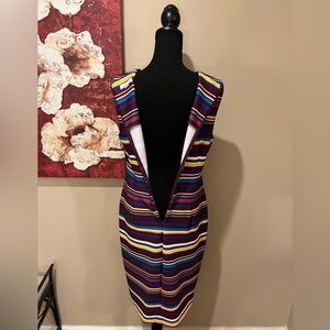 Calvin Klein Scuba Knit Dress,Plum Striped BodyCon Sleeveless City Modern, sz 12