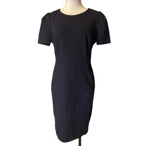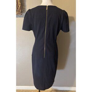 Calvin Klein Scuba Sheath Dress 14 Navy Blue Short Sleeve Stretch Career Church