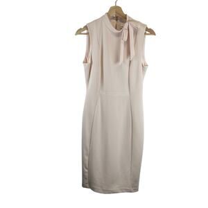 Calvin Klein Scuba Tie Mock Neck Sleeveless Pencil Dress Blush Pink Size 6